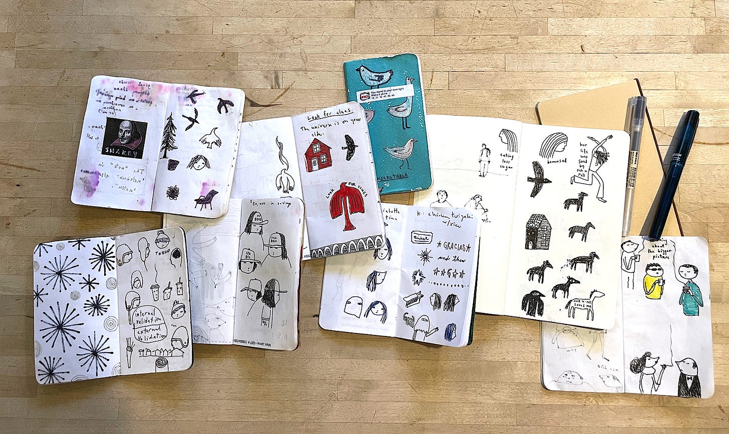 My inspiration is hidden away in notebooks. I carry one with me most of the time, and scribble down ideas during my bus rides to work. Here’s a peak at a few from the past year: