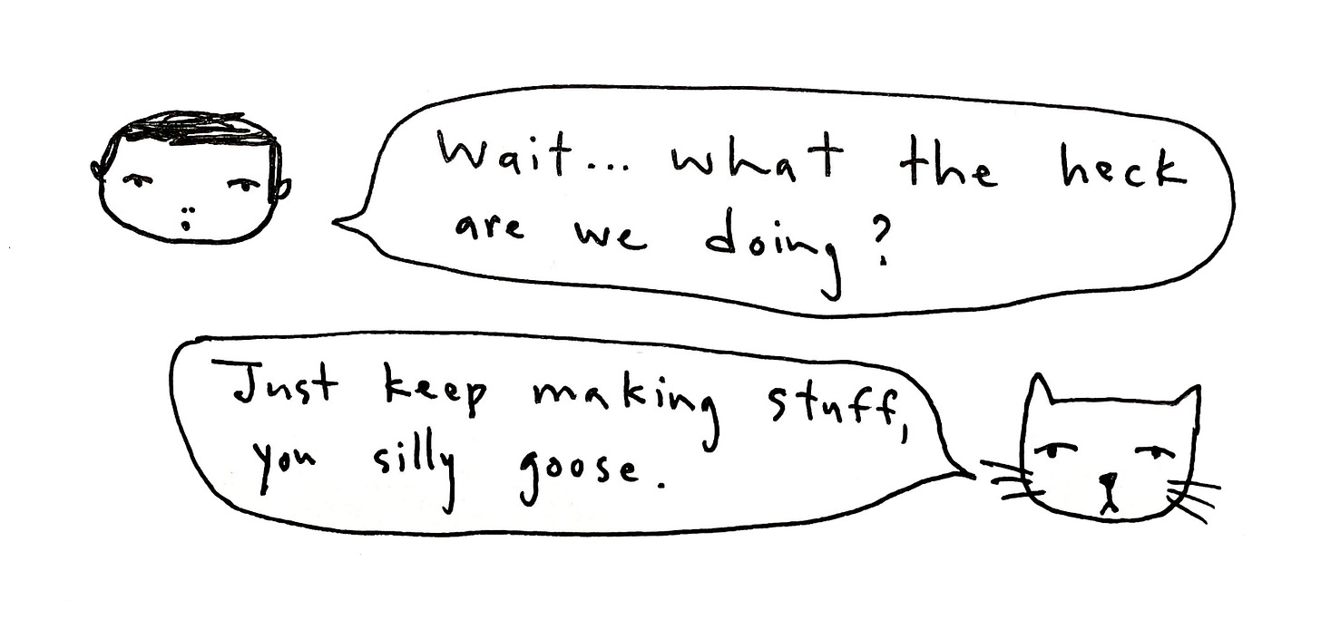 The cat at the start is right - Just Keep Making Stuff, Silly Goose - the advice we all need (me included!) right now <3 beautiful art too, and the collection on the shelf - suuuch a great idea for inspo!